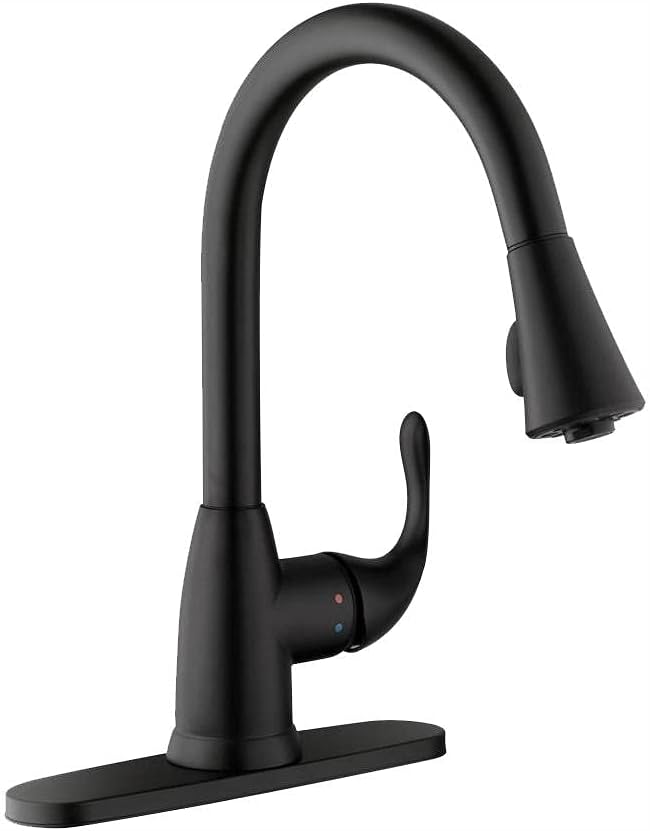 The Glacier Bay Market Single-Handle Pull-Down Sprayer Kitchen Faucet is designed to enhance the style and functionality of various kitchen decors. Its Matte Black finish provides a contemporary aesthetic. This faucet features a user-friendly single handle design and a convenient pull-down spray wand with two distinct spray modes, offering extended reach for diverse kitchen tasks. Key features include an aerated spray and the exclusive TurboSpray, which delivers a stronger spray pattern than standard pull-down faucets. For reliable, drip-free performance, the faucet is equipped with a ceramic disc cartridge. Installation is simplified by the exclusive FastMount mounting system.