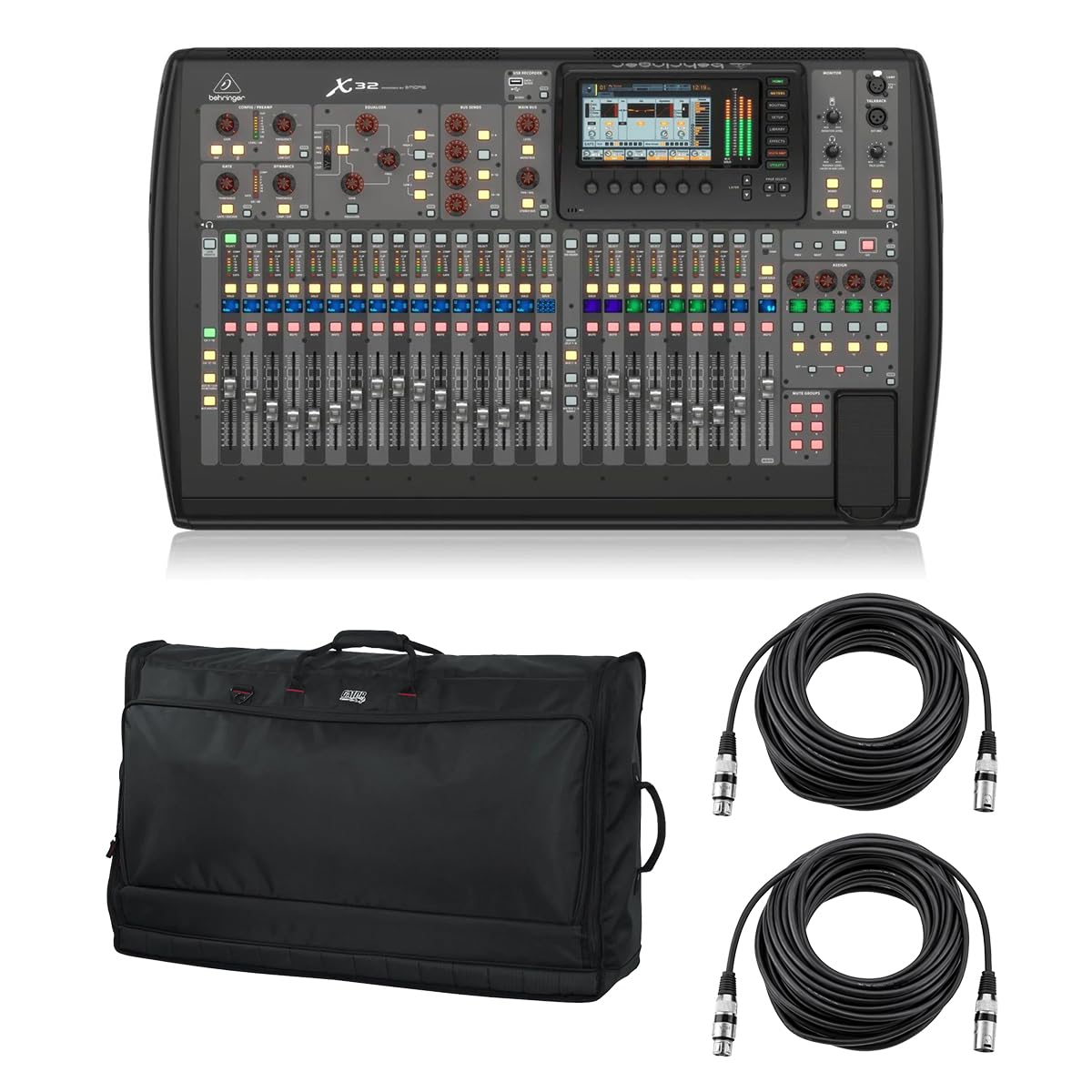 Carefully unpack all components and inspect them for any signs of damage during transit. Retain the packaging for future transport or storage. The bundle typically includes the Behringer X32 console, power cord, a padded nylon carry bag, and XLR cables.