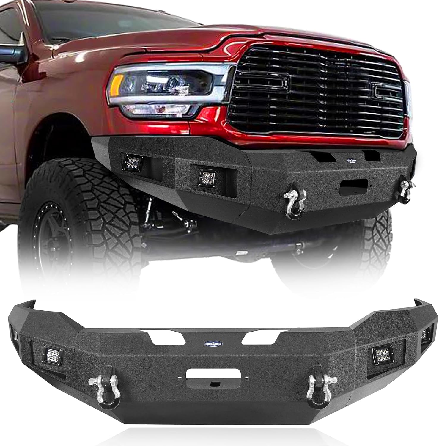 This front bumper is compatible with 2019, 2020, 2021, 2022, 2023, and 2024 Ram 2500 and 3500 trucks, including Regular Cab, Quad Cab, and Crew Cab models. Note: Not compatible with factory sensors.