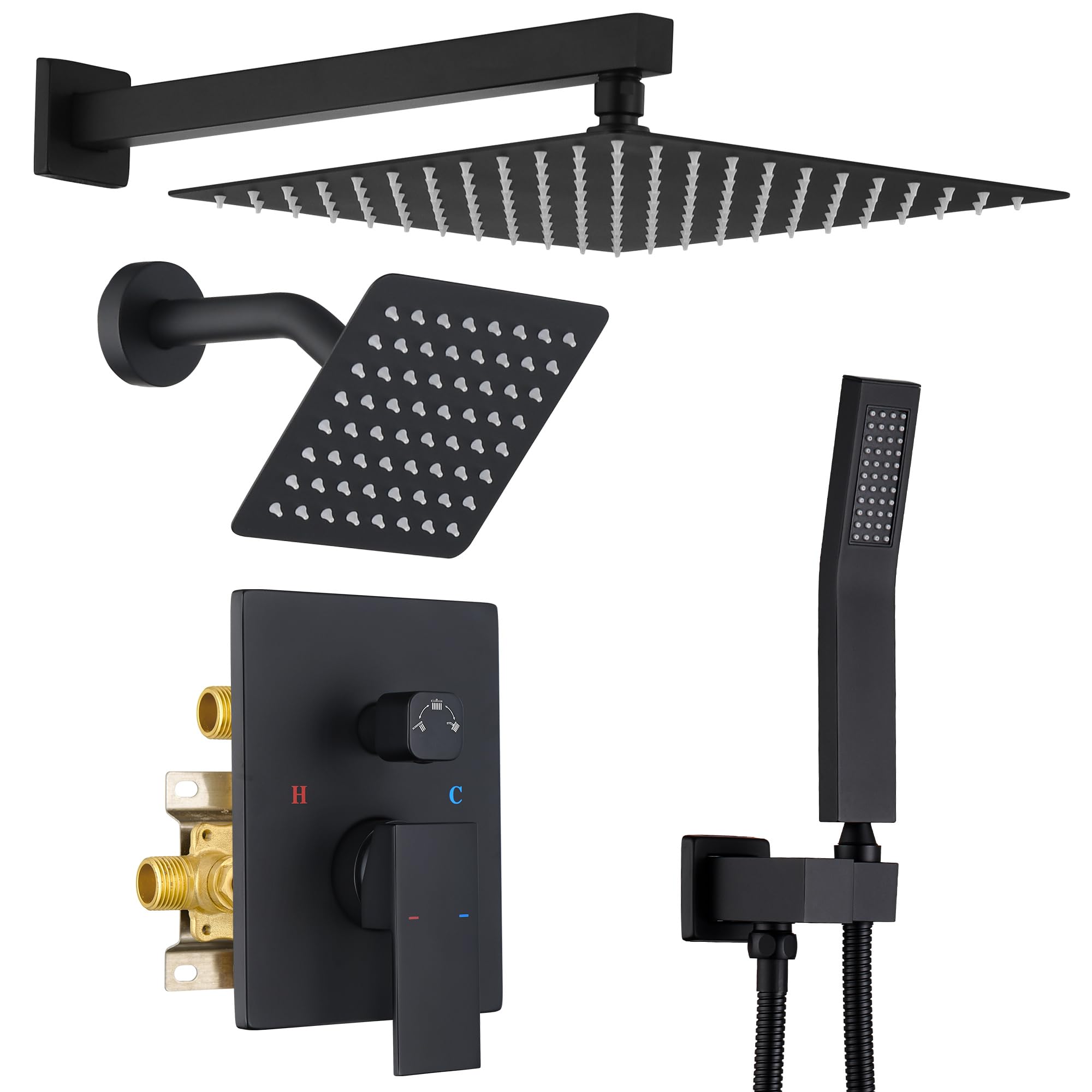 - A dedicated knob on the valve allows you to switch between the 12-inch rainfall showerhead, the 6-inch wall-mounted showerhead, and the handheld shower.