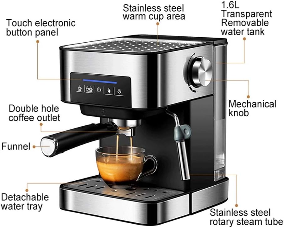 - Touch electronic button panel: For controlling brewing functions.